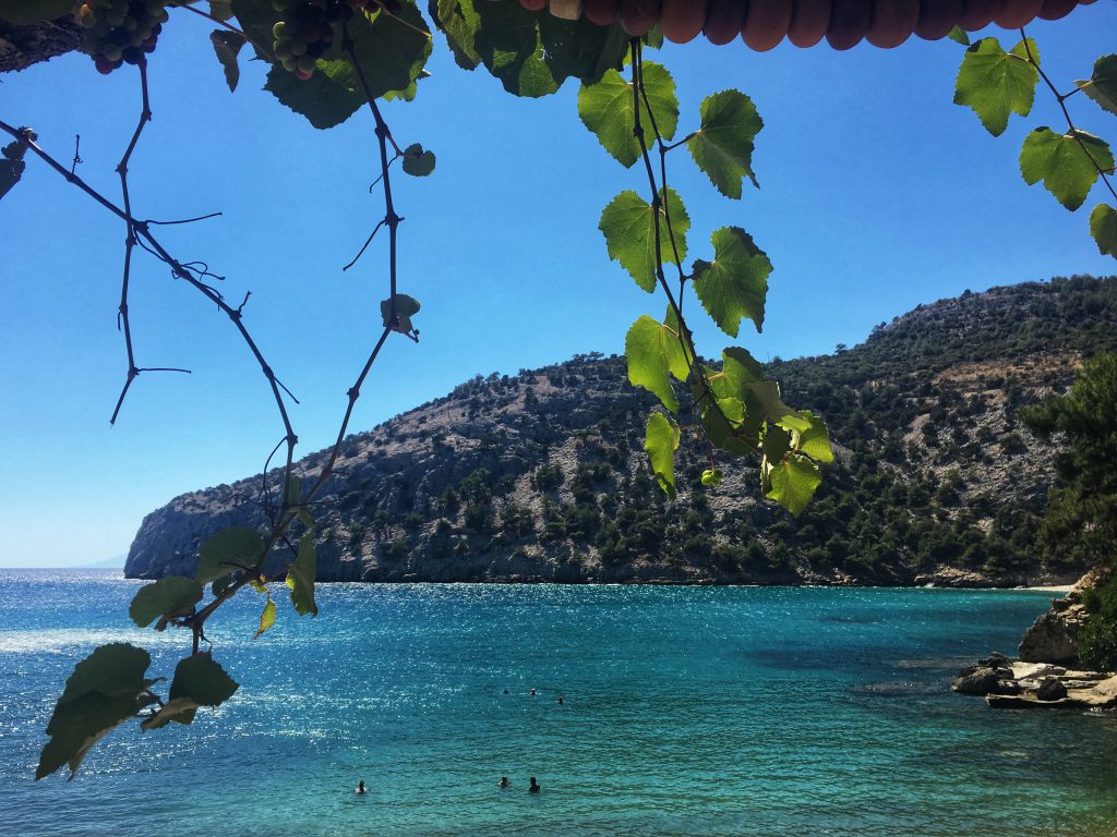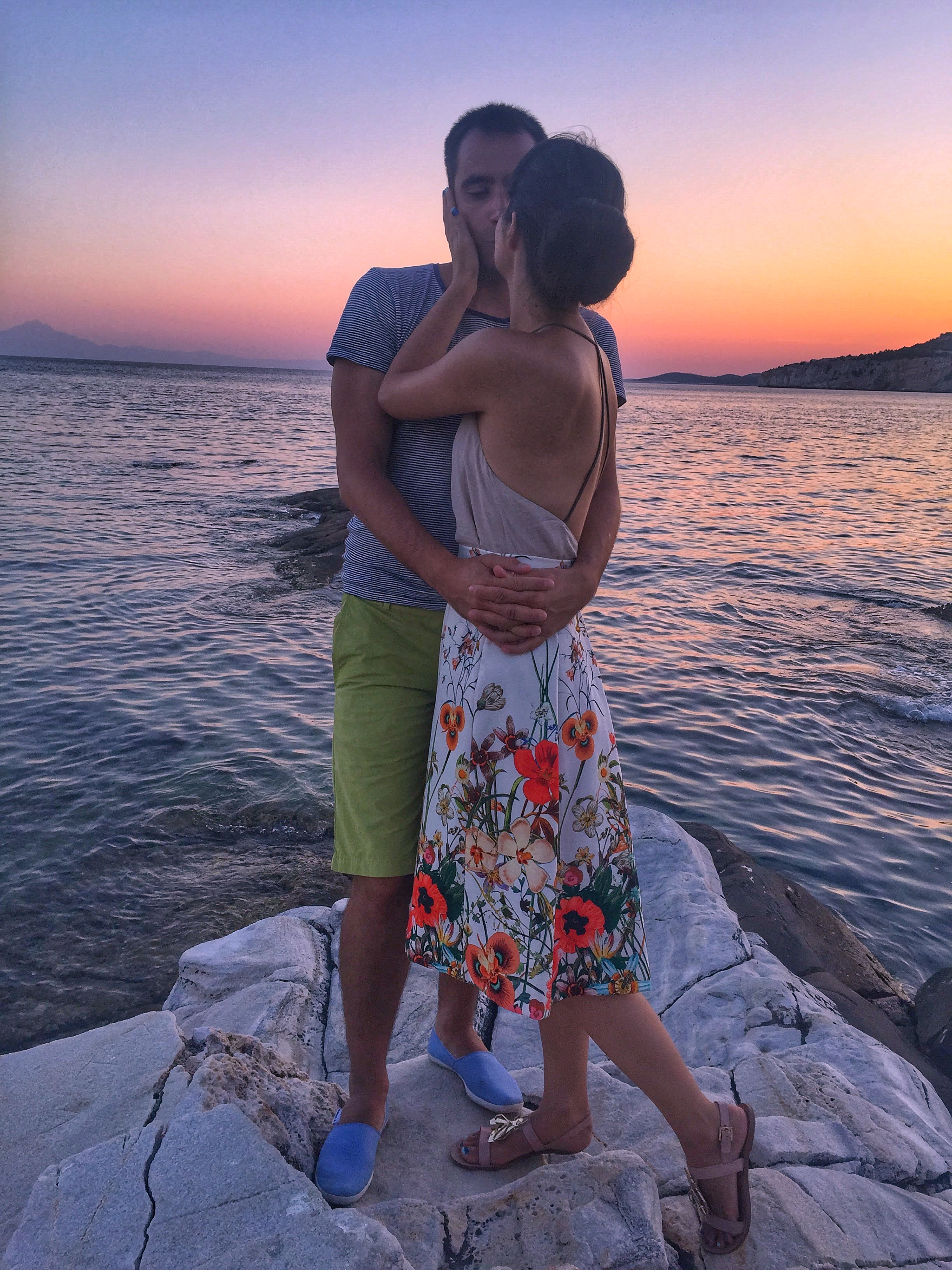 Мястото, където спим не е луксозен хотел и е далеч от шумните градчета. Намира се на полуостровчето Алики (известна историческа забележителност с екопътека – в древността там се е добивал мрамор, има останки на дворец и църква). Къщата ни е точно до плажа и има приказна гледка към морето. Нищо не обичам повече от закуската на терасата ни с домашно сладко от смокини или обяд с току що уловена риба.