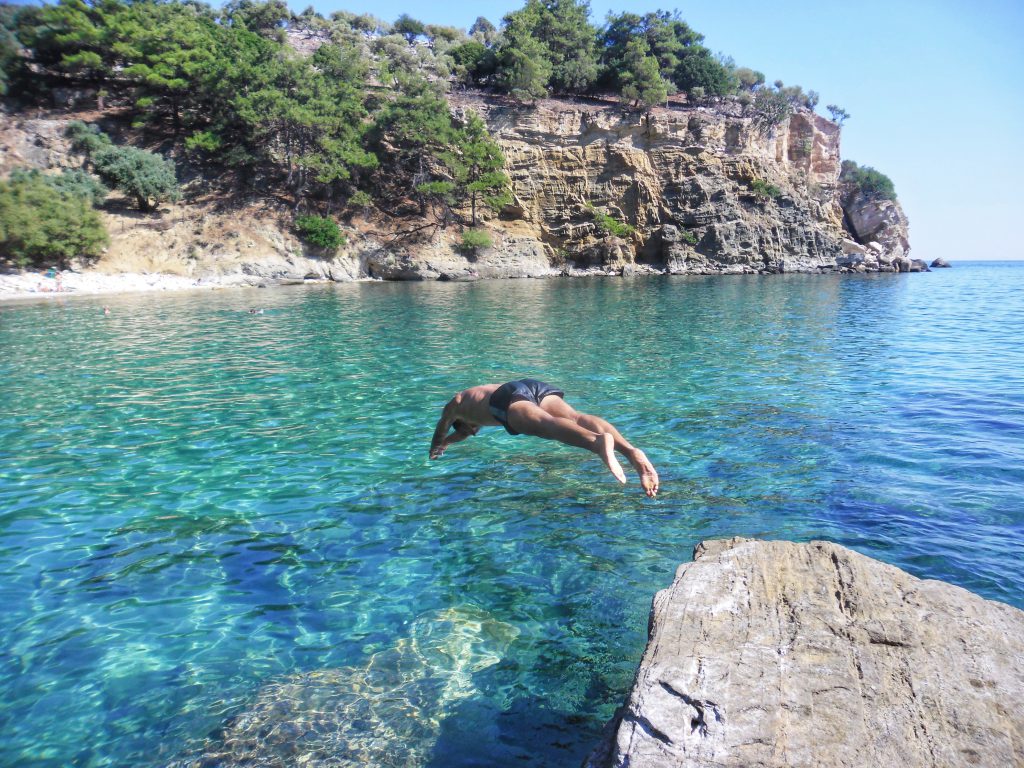 Със сигурност си заслужава да посетите и Гьола – естествен басейн в скала до морето. Скачайте от скалите или просто поплувайте вътре, изживяването си струва. Вече има път до там от няколко години, с табела, която указва посоката и стана по-лесно достъпно и съответно доста популярно. Първия път, когато ходихме, пътя беше ужасен и се отказахме, оставихме колата и слязохме пеша от главния път по едни скали… обаче си заслужаваше усилието – това беше първия и единствен път когато видях гьола с кристално синя вода, всяка следваща година беше зеленикава и мътна.