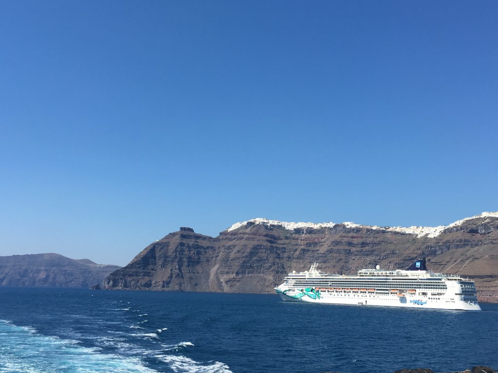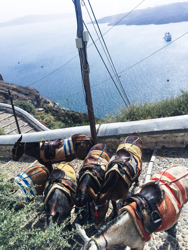 Осем часа по-късно сме в Санторини и катерим стръмния път от пристанището до главния път на острова.
