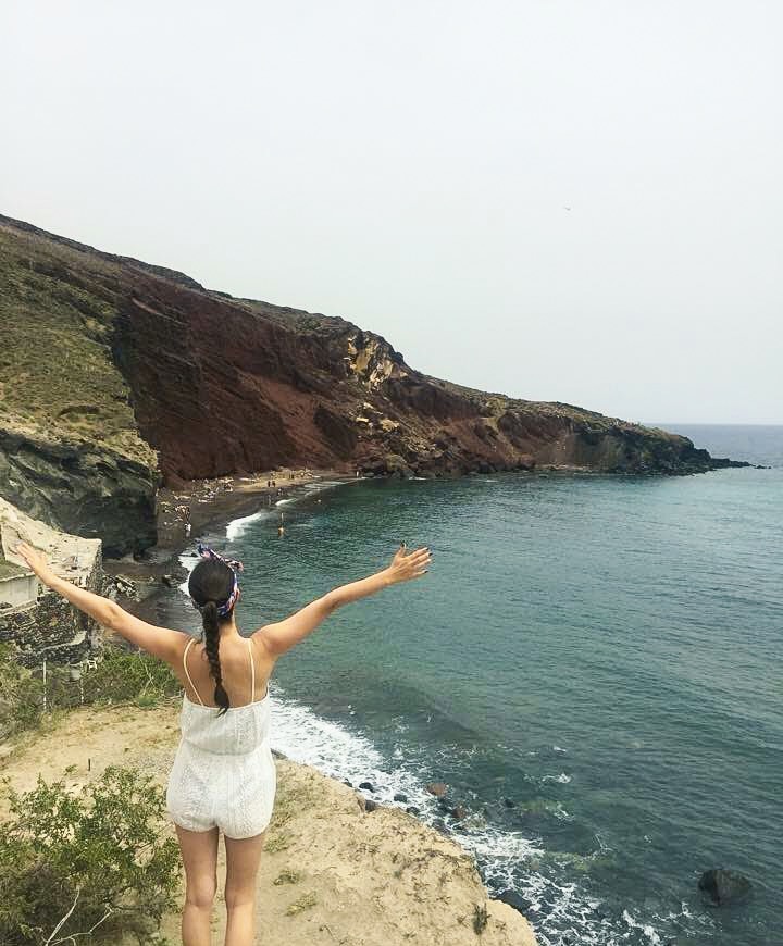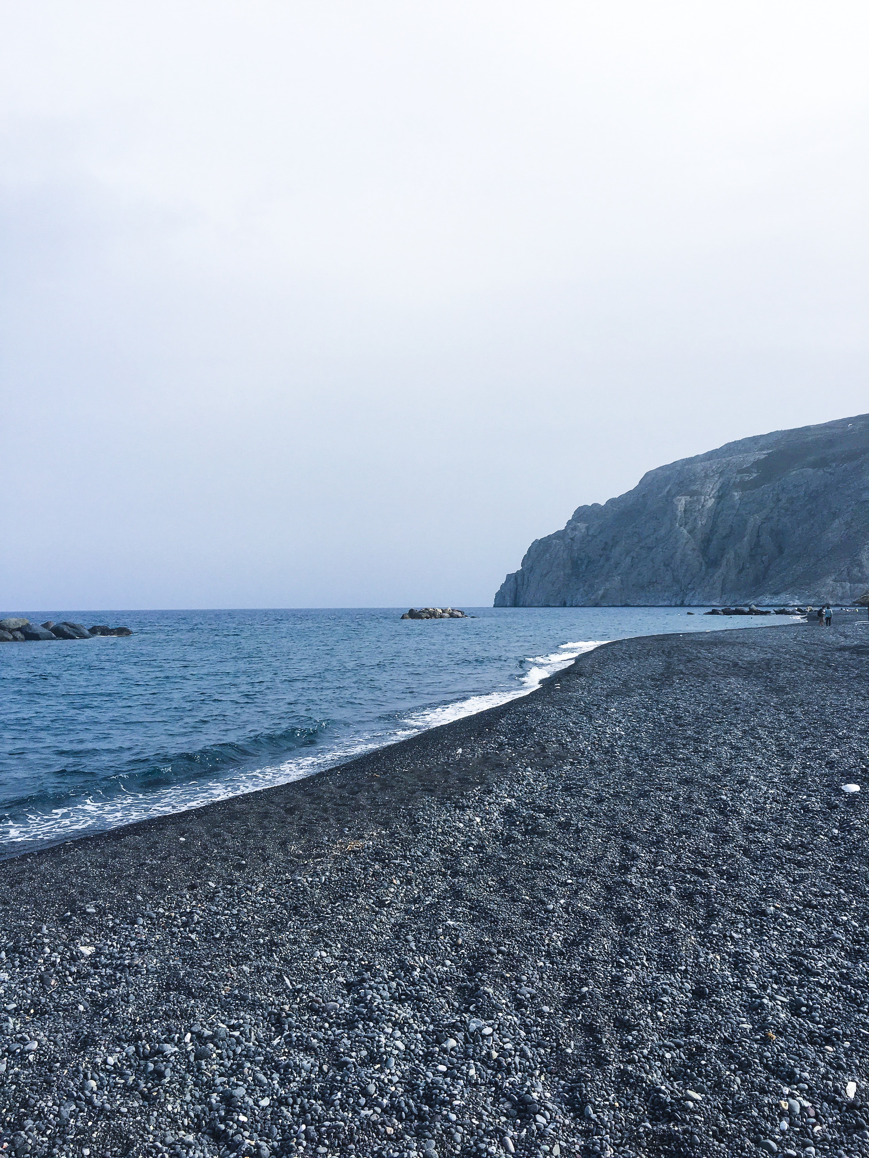 След това се отправяме към известния червен плаж, черния плаж и другото по-популярно място за плажуване на острова – Kamari beach. Санторини, поне според мен, определено не е място за морски тип почивка – има само няколко плажа на острова и всичките са кофти – нищо общо с кристално сините води на гръцките острови – по-скоро са много каменисти и водата няма изобщо такъв цвят, сигурно заради вулканичния произход на острова. Само червеният плаж си заслужава да се види, казва се така, заради червените скали,които го обграждат, пясъкът също е червеникав. Камари представлява дълга плажна ивица, заведения, атракции – определено не мой тип плаж. Черния плаж също се казва и Периса или Периволос –отново дълга ивица, черни камъчета вместо пясък, заведения – нищо особено.