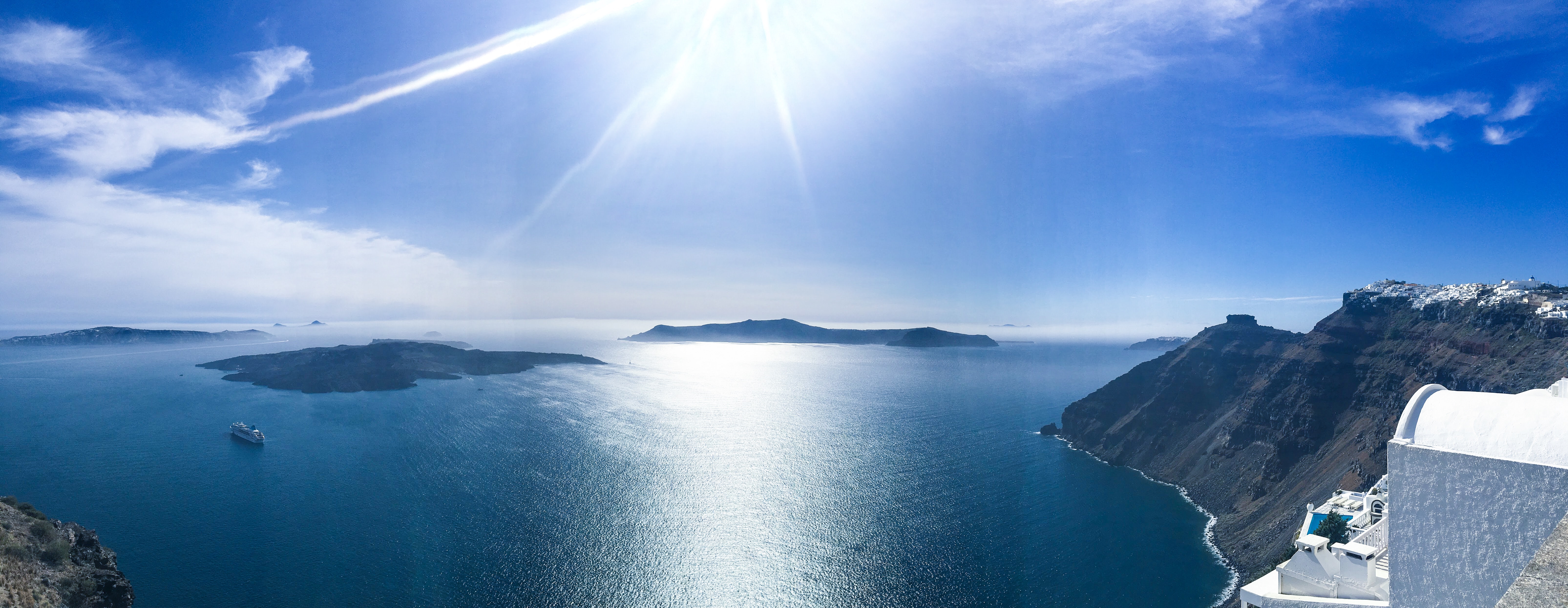 Санторини е място, което си заслужава да бъде посетено на 100%. Различен е от всички останали гръцки острови, понеже както предполагам знаете е с вулканичен произход и всъщност и до днес вулканът там е активен – ако посетите острова Неа Камени, ще имате възможност да се разходите по кратера на активен вулкан !!! Островът е бил с почти правилна кръгла форма, но мощно изригване на вулкана буквално изстрелва централната му част във въздуха и така се образува съвременния му облик – архипелаг от остови с огромен кратер в средата или калдера както още се нарича.